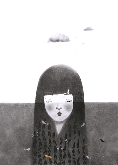 Okachangrafite e ricamo su carta per la mostra collettiva “Ver” – galleria Curiosités – Montpellier (2015)*Okachangraphite – embroidered illustration for the exhibition “Ver” at the Curiosités Gallery in Montpellier. (2015)